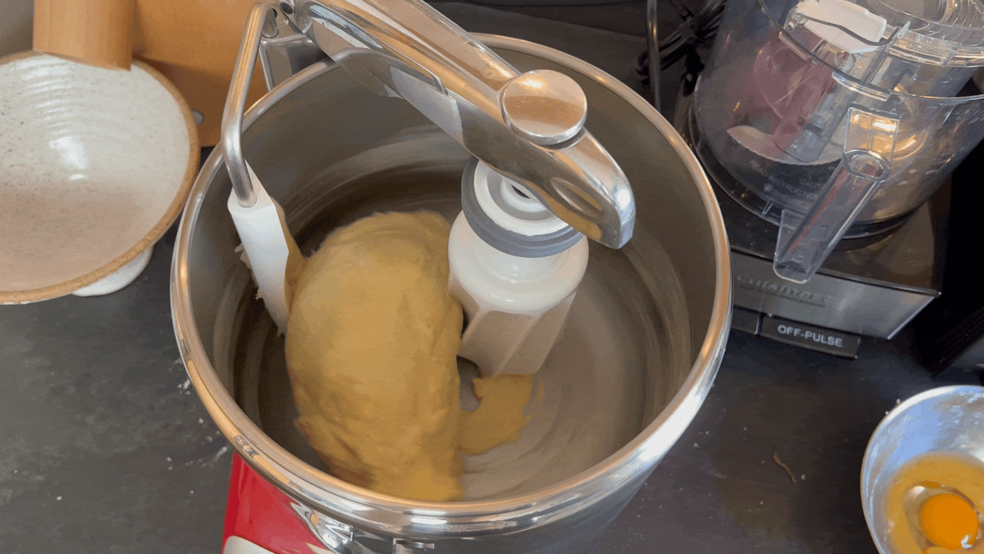 Because the bowl is so large, the Ank does struggle a little when making small-batch recipes—usually this just means needing to move the arm around by hand to make sure ingredients get evenly combined. (One fun detail about the Ank is that because there is so little motion happening during mixing, you can safely reach into the bowl or move the arm around to adjust things without risk of injury.) You can also move the scraper around by hand to “chop” the dough against the bowl for more efficient mixing.