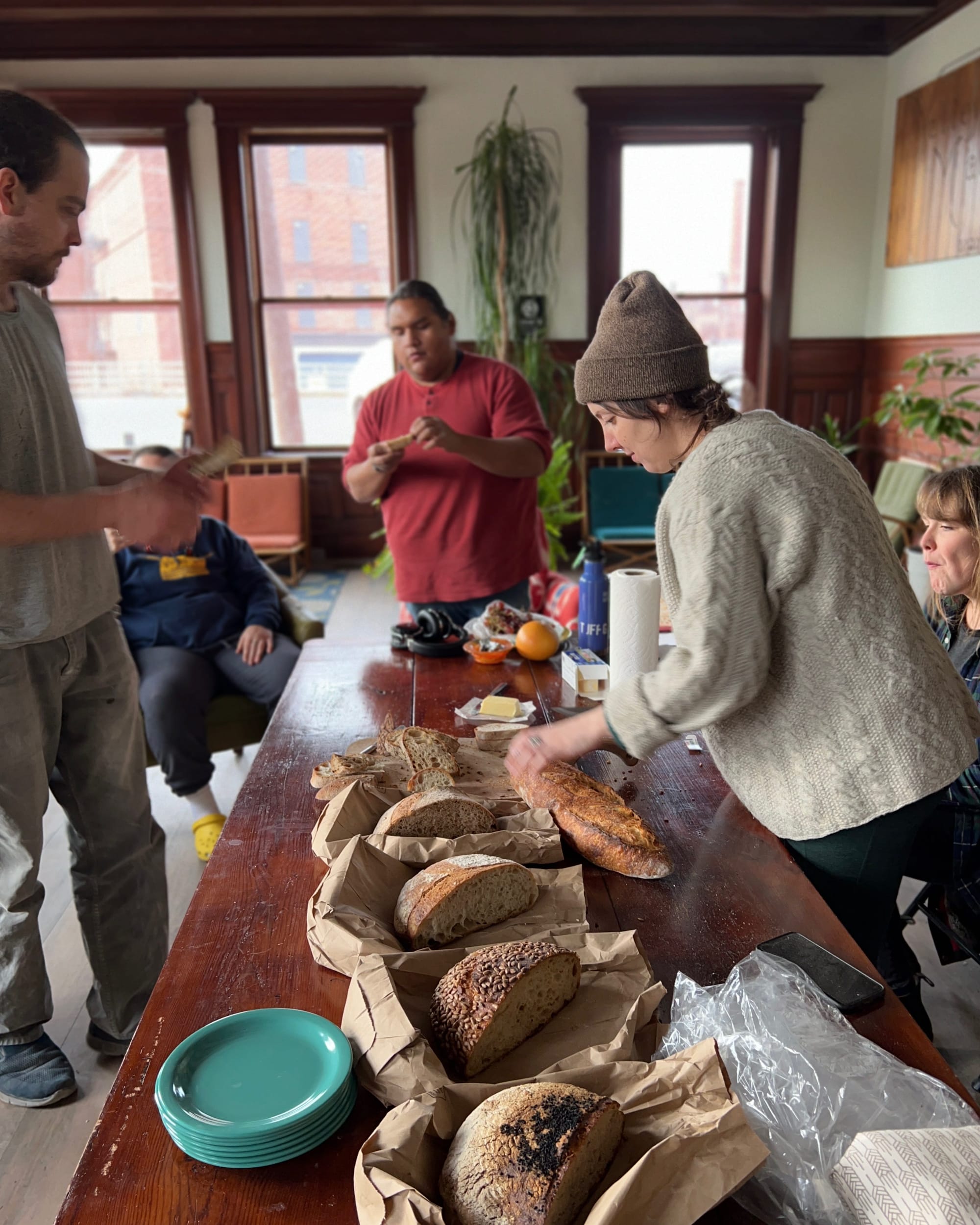 While we were in town, Jess, Kami, and I took a trip to Hungry Ghost Bread, in Northampton, MA, one of Ground Up’s customers, and one of the best bakeries in the area. (I’ll share images from our behind-the-scenes visit there on another day.) Naturally, we brought loads of bread back to the mill to share and talk over with the millers.