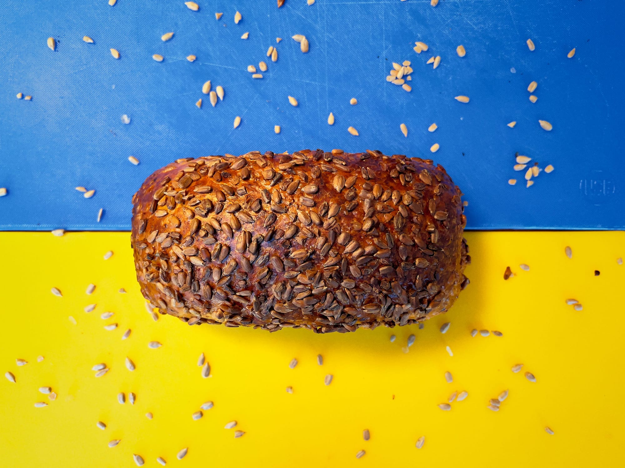 A 7-grain-sunflower seed porridge pan bread ($10/each; 6 available SOLD OUT!). Wheat and sunflowers are Ukraine’s number one and two largest food exports. (The Ukrainian flag, a field of blue over a field of yellow, is—depending upon whom you ask—meant to represent blue sky over a field of wheat or a field of sunflowers.) You may have seen the viral video of the Ukrainian woman offering Russian soldiers sunflower seeds to put in their pockets so that sunflowers would grow on the soil where they died. (The formula is here.)