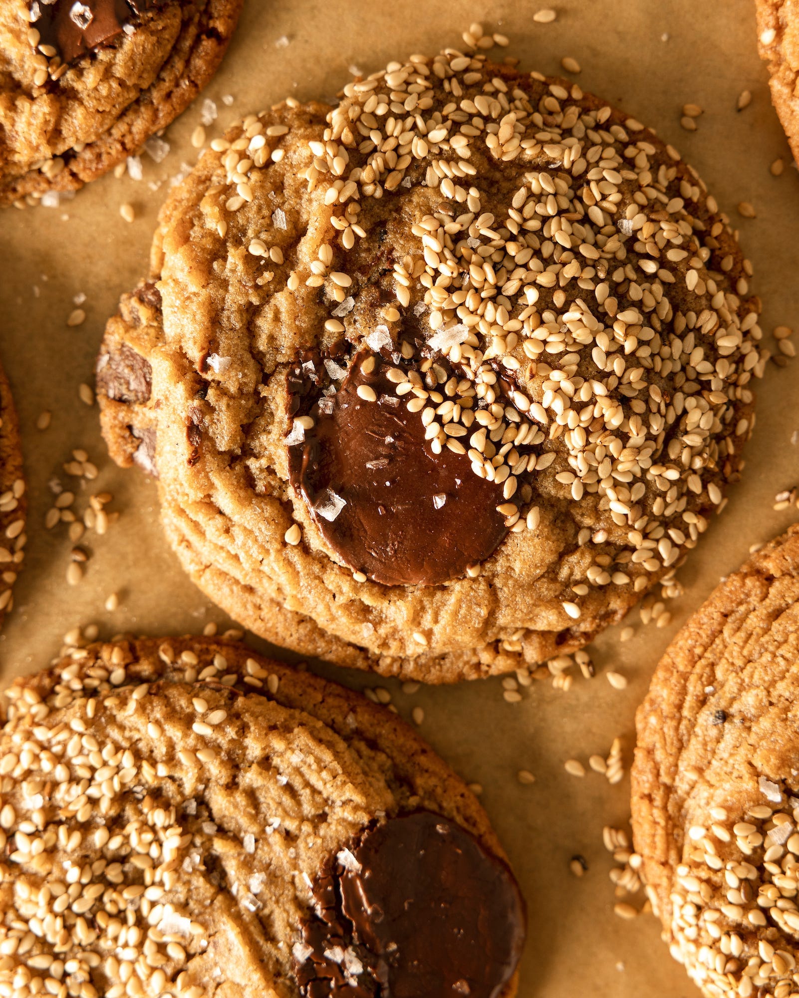 I first made these cookies for a pop-up in Los Angeles in partnership with a small, curated grocery shop in Chinatown called Sesame LA. I wanted to create a signature chocolate chunk cookie that honored the shop in some way. Sesame and barley are both nutty, a natural match. Miso is a ferment of soybeans, sometimes combined with rice or barley, and used extensively in savory cooking, but is fantastic in desserts—like salt but with tons of umami. You can use any color miso you like, but my favorite is red, for its intense flavor. I make my own, but store-bought is fine! The addition of miso to these cookies makes them instantly craveable. I like to dip the cookies halfway in seeds to achieve a two-toned look, but if you are a seed lover, feel free to roll the entire cookie in sesame seeds; it will add extra crunch. The cookie dough lasts for 2 weeks in the fridge or 3 months in the freezer. Baked cookies keep for 2 weeks at room temperature in an airtight container.