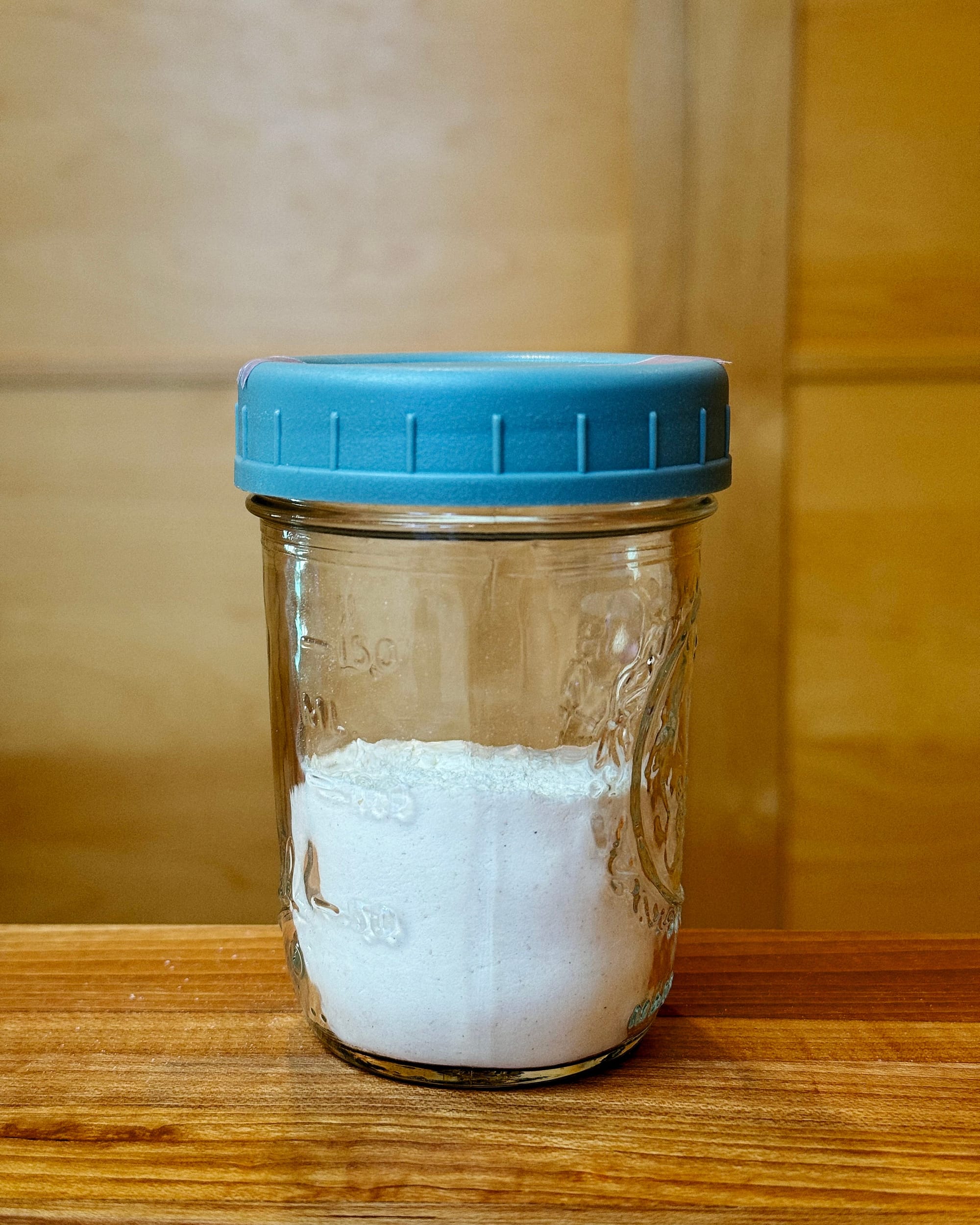 Here’s how to use serial dilution with instant yeast: place 49.5g flour and 0.5g (1/8 teaspoon if you don’t have an accurate gram scale) yeast—or any amounts, in a 99:1 ratio by weight—in a jar, seal it up, shake well, and store in the fridge. Whenever you need a teensy amount of yeast, use 100 times as much as the recipe calls for (or the 100x weights given by my preferment sheet). You’ll add some extra flour to the formula in the process, but the difference will be negligible.