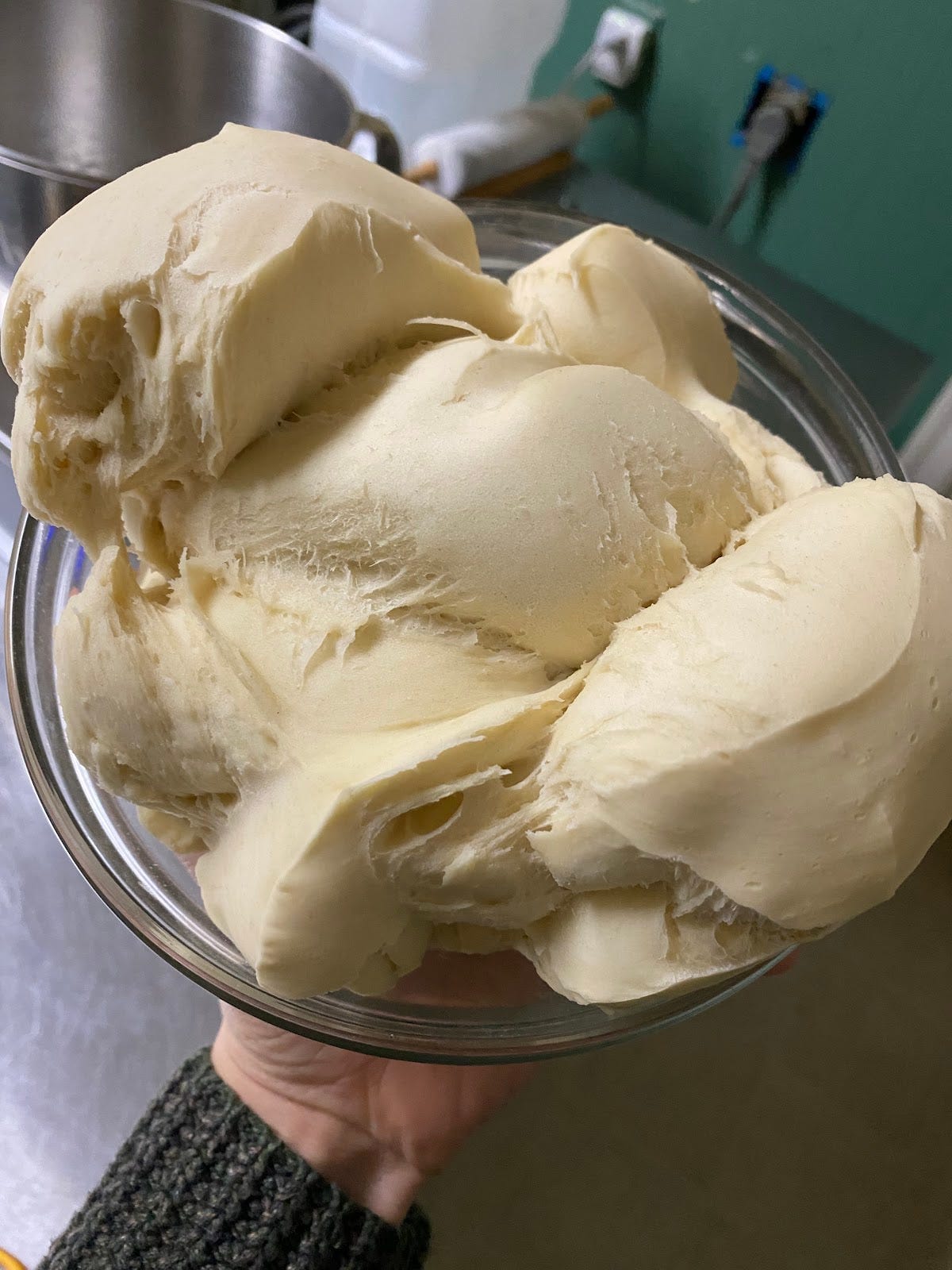 After temperature, timing is the second most important aspect of panettone-making. I want to focus on two places where timing is most fundamental to success. The first is during mixing, especially knowing when to stop mixing the first dough. You want the first dough to be strong and well-developed, but you don’t want it to become glossy and super-extensible (stretchy), which is a sign that the gluten has been damaged and can lead to further gluten degradation during fermentation.
