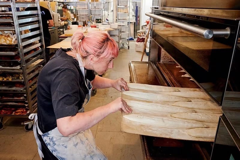 A rough rundown of the process is that we start at 5am, I get some bread loaded in the oven, mix starters (sweet starter roughly 28˚C/82˚F and sit it somewhere warm if needed) and shape baguettes, then start baking pastries around 6am.