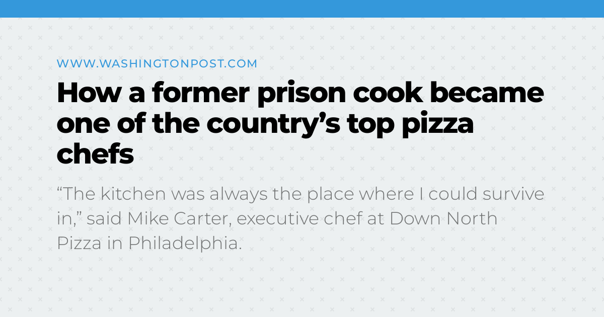 The WaPo’s Sydney Page profiled Mike Carter, the Philadelphia pizza king who learned to cook in prison, and is now using his success to improve the lives of other formerly incarcerated people: