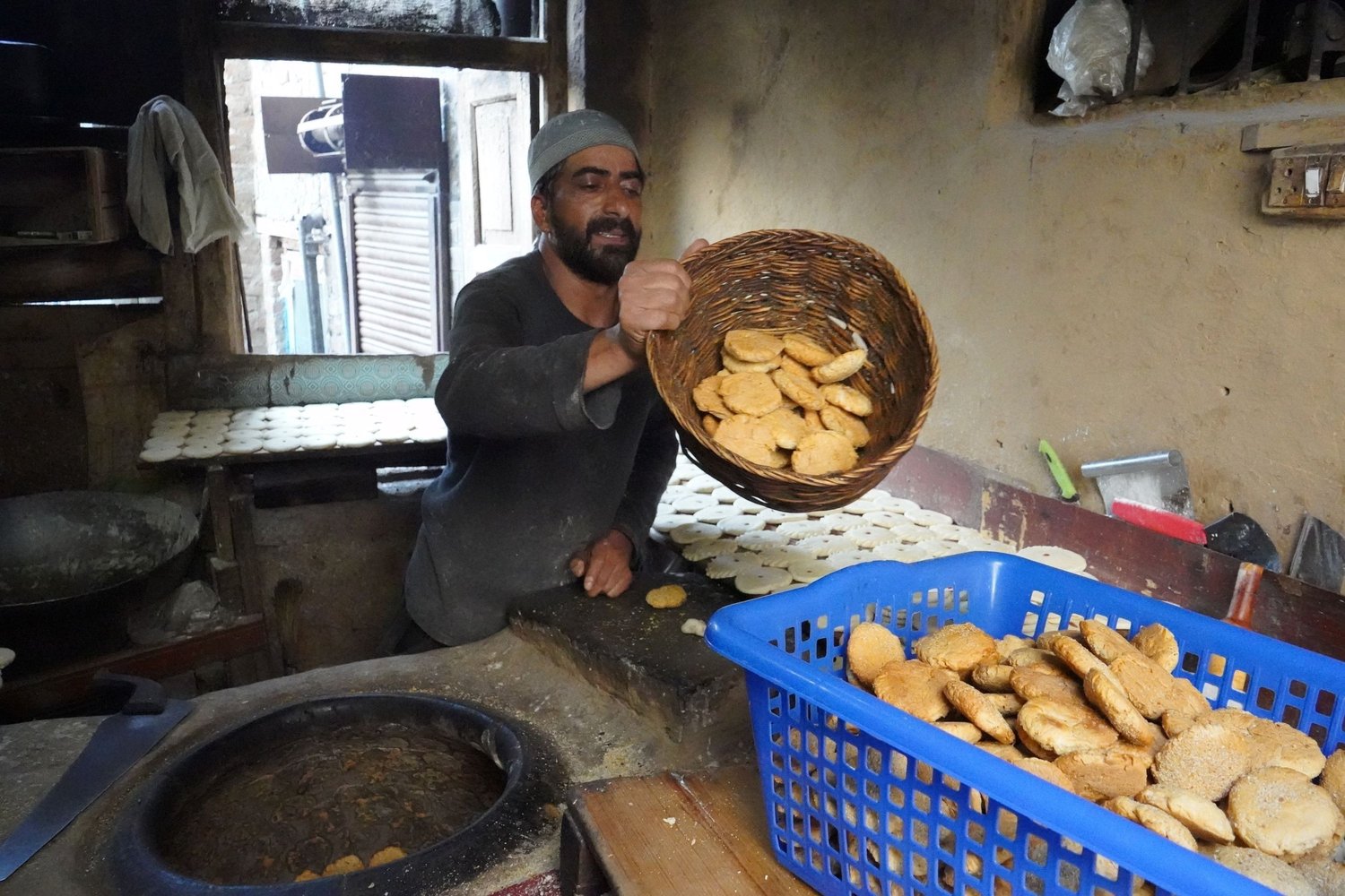 Beyond the community aspect of Kashmiri baking, I'm struck by how Middle Eastern the products are. (Which makes sense, given Kashmir's position on the map.) There's a paper thin flatbread called lavasa, and a fingertip-dimpled one called girda that is similar to pide or matnakash.