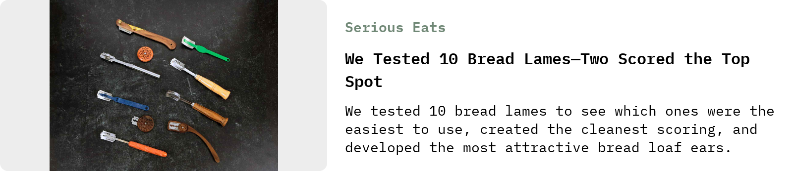 Over at Serious Eats, Jesse Raub wrote a highly useful review of various bread lames, and asked me for a quote or two. Best of all, he chose the one I usually recommend, which I think of as the “hot dog” lame:
