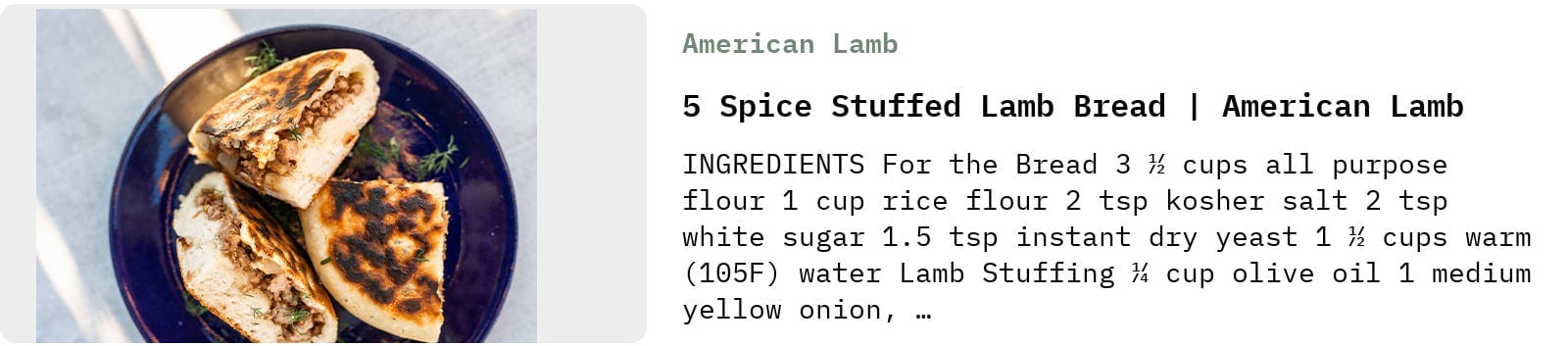My friend Jenny Dorsey created a lamb stuffed flatbread recipe for American Lamb, and—though I am not really eating much meat right now—I knew I had to share it here: