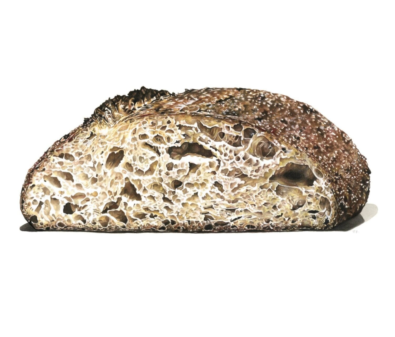The sourdough loaf painting is available to purchase as a pay-what-you-can archival inkjet print in various sizes; many of her other images are available as prints as well.