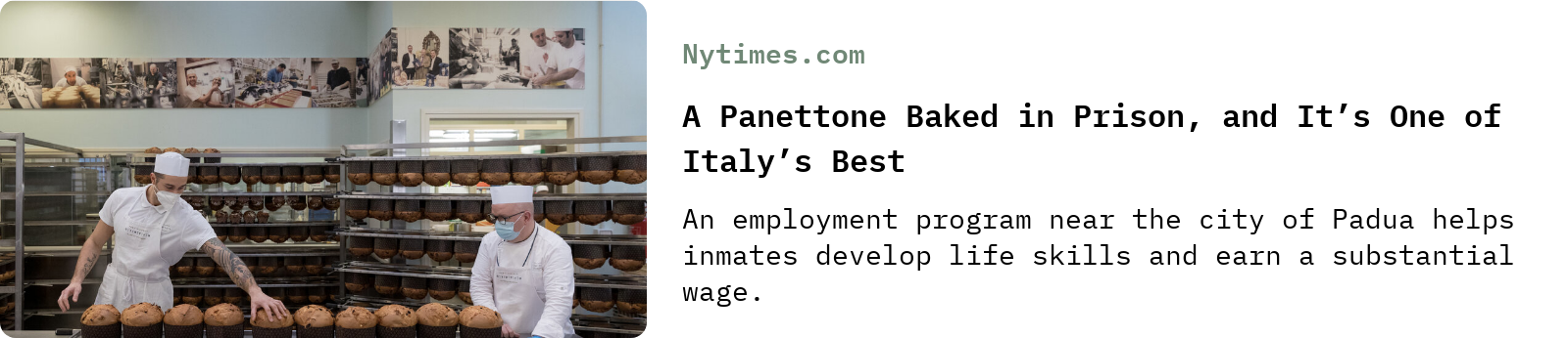 Matteo de Mayda recently photographed and wrote an amazing piece for the New York Times about a men’s prison that is producing some of Italy’s best panettone: