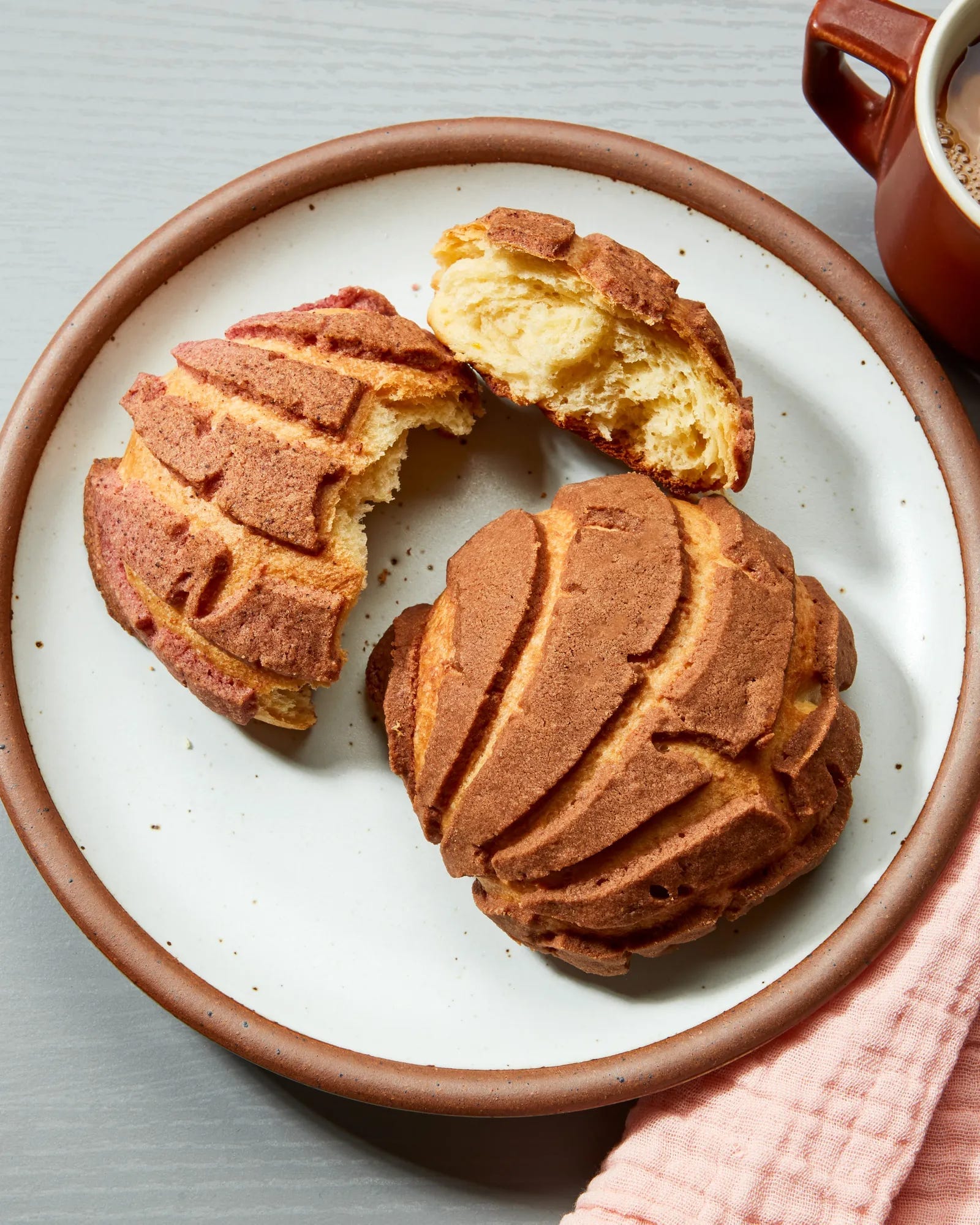 Inextricably linked to Mexican cuisine, conchas have a long and complicated history. The exact origins, though, are murky. Wheat is not native to the Americas, and it did not arrive there until the invasion of Mexico by the Spanish in the 16th century. While Europeans had a taste for wheat bread, the indigenous population did not—and in fact it may have been forced upon them during the early years of colonization. Some historians believe that French pastry chefs brought brioche to Mexico during the 17th century, and that this served as the foundation for what would become pan dulce. Eventually, bakers in Mexico began to incorporate both indigenous ingredients like corn and imported ones like lard into these French breads, birthing a new style of baked goods in the process.