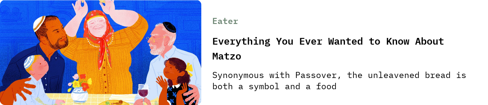 ICYMI, there was another Eater matzo post that accompanied the one I shared last week, this one an explainer on everything you might want to know about the “bread of affliction”: