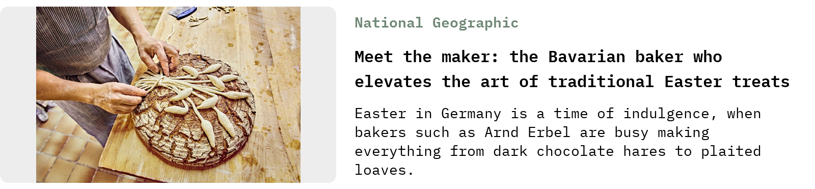 Easter is over for most, save for those who follow the Orthodox calendar, but that doesn’t mean we can’t keep eating Easter treats. And there are loads of them to discover in this NatGeo story on Bavarian Arnd Erbel’s Easter offerings: