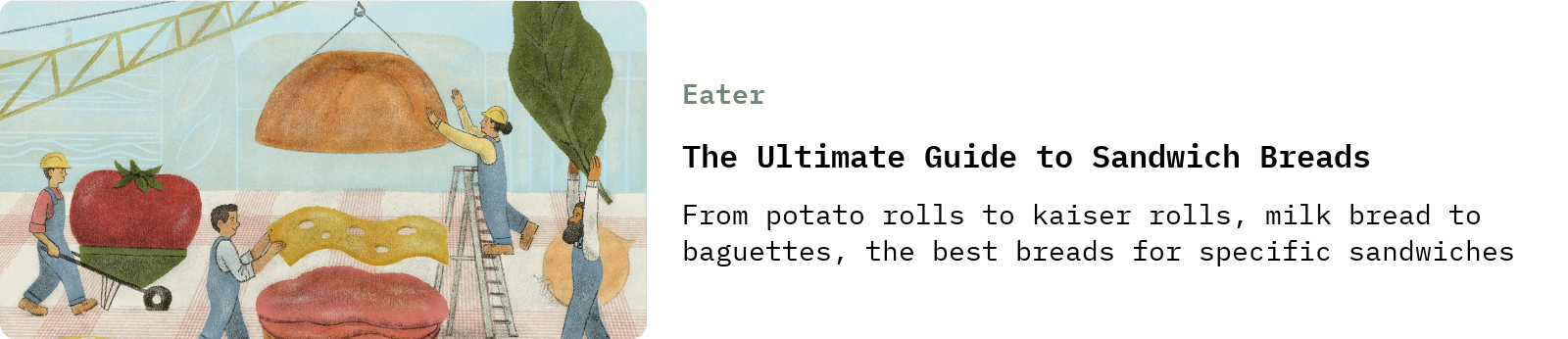 My friend—and Wordloaf contributor— Dayna Evans wrote an excellent roundup of the world’s best sandwich breads and their uses for Eater this week: