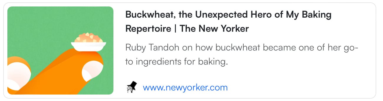 Wordloaf fave Ruby Tandoh, again at The New Yorker, on the heroism of buckwheat flour in baking: