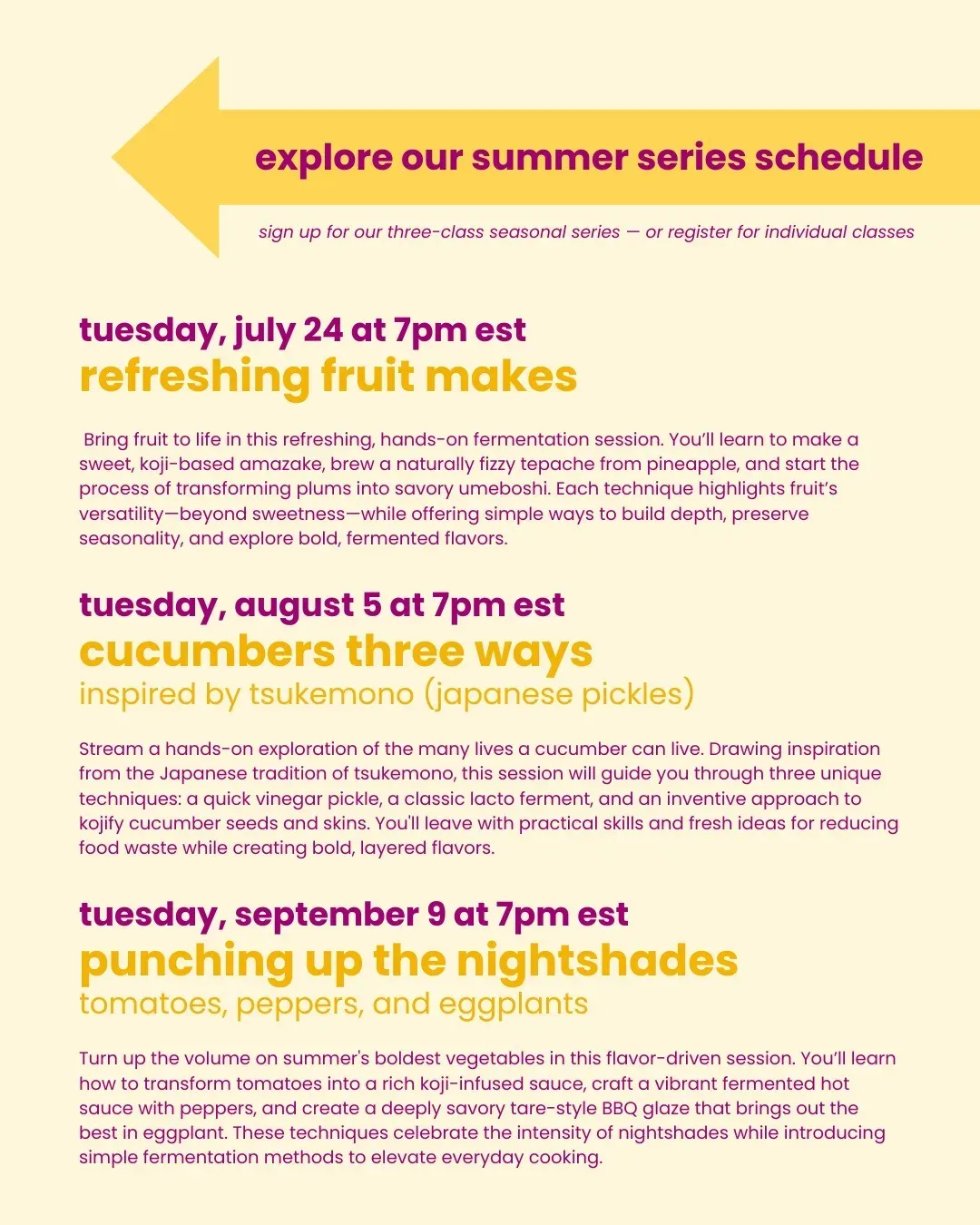 This one is a little late, actually, but not too late for you to get in on it: My pals Peter Barrett and Rich Shih are running a series of virtual workshops right now on using koji (which will feature a teensy bit in Breaducation, with an assist from these two) to make the most of summer fruits and vegetables.