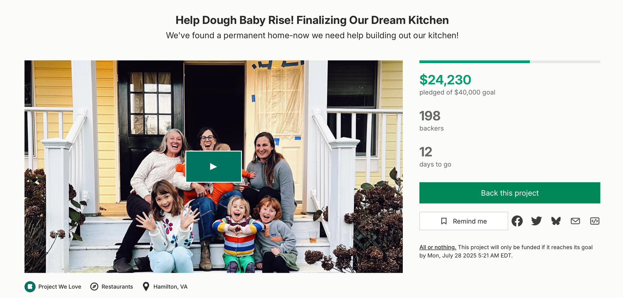 The idea for Dough Baby was hatched when cookbook author and baking pro Tara Jensen began doing monthly pop-ups in 2022 at the Hamilton Mercantile, owned by Meredith Brown and Abbie Whitehurst. Each pop-up had a theme, offering donuts, pizza, focaccia, cookies, or cakes. The events sold out quickly and attendees loudly wished Hamilton had a “real” bakery. Simultaneously, Tara began hunting for a place to host her sold-out baking workshops, which brought in bakers from around the country. Combining the idea of a pizza place, bakery and workshop space sounded perfect and with high hopes and hungry bellies, Dough Baby S Corp was born on August 23rd, 2023.