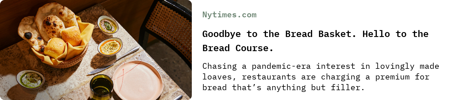 “It’s almost like a bread revival,” Mr. Werrell said of the bread service explosion. “Around 2021, 2022, I really saw people reinvesting in bread courses.” And, he suggests, there’s a clear reason it’s happening now: Americans, fresh off the pandemic-era sourdough craze, have discovered a newfound appreciation for bread.