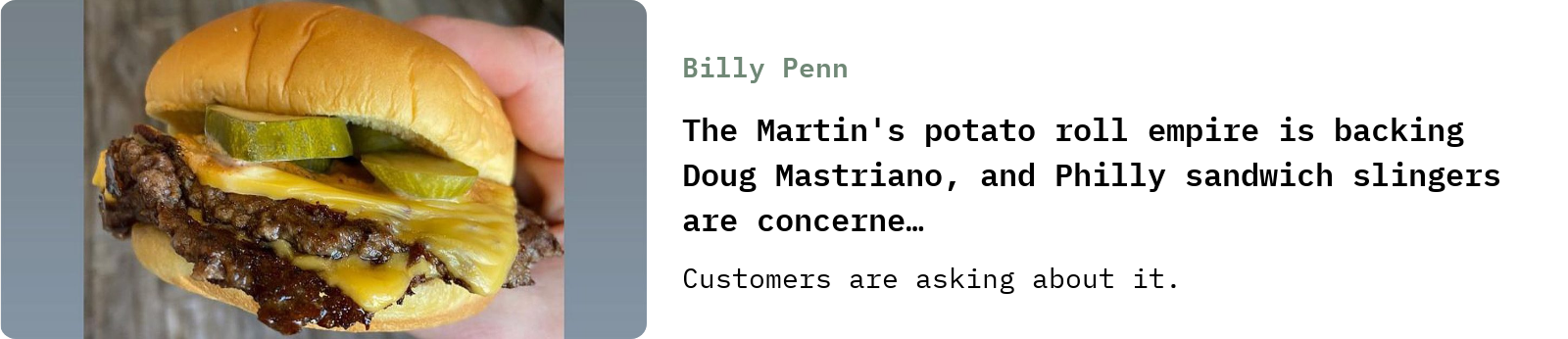 Potato roll magnate Jim Martin has given Mastriano’s gubernatorial campaign well over $100k. That’s causing some worry among Philly restaurateurs that serve Martin’s products.