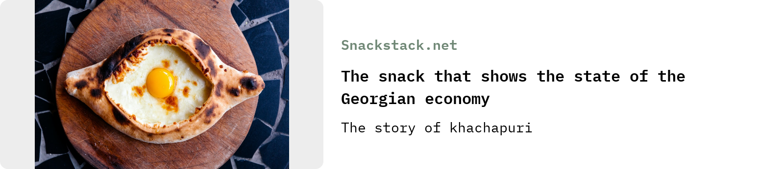 In the meantime, there’s a great article at snack Substack Snackstack all about the joys and wonders of the khachapuri: