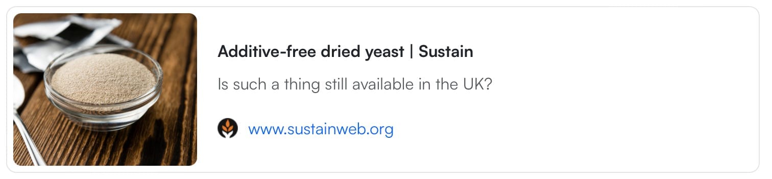 In April 2024, the Campaign searched for additive-free dried active and fast acting (also known as quick, instant, easy bake etc.) yeast available in the UK.