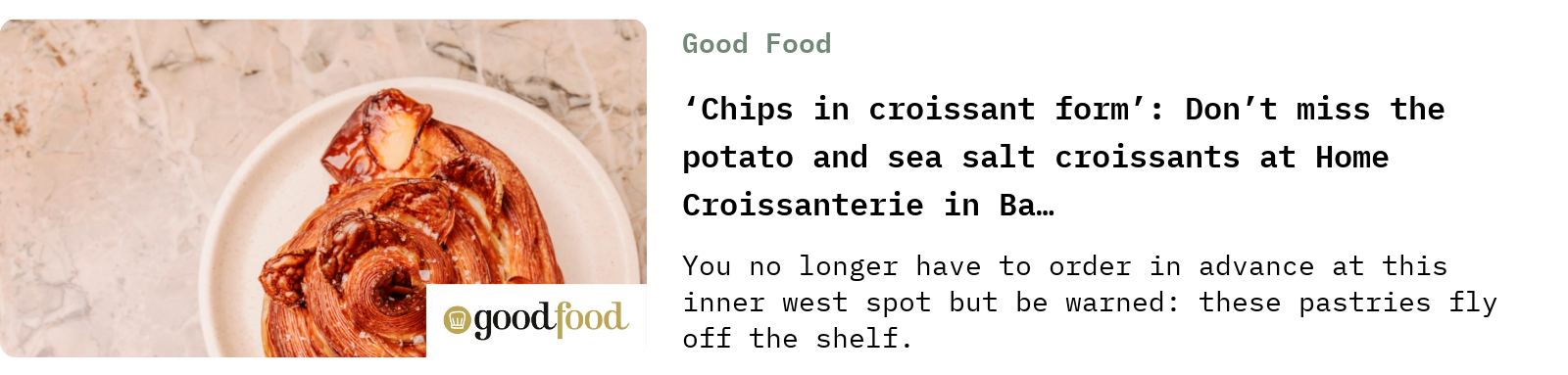 Lee Tran Lam recently wrote about the potato and sea salt croissants from Home Croissanterie in Sydney, Australia, for the Sydney Morning Herald, and I wanted you all to know about them too: