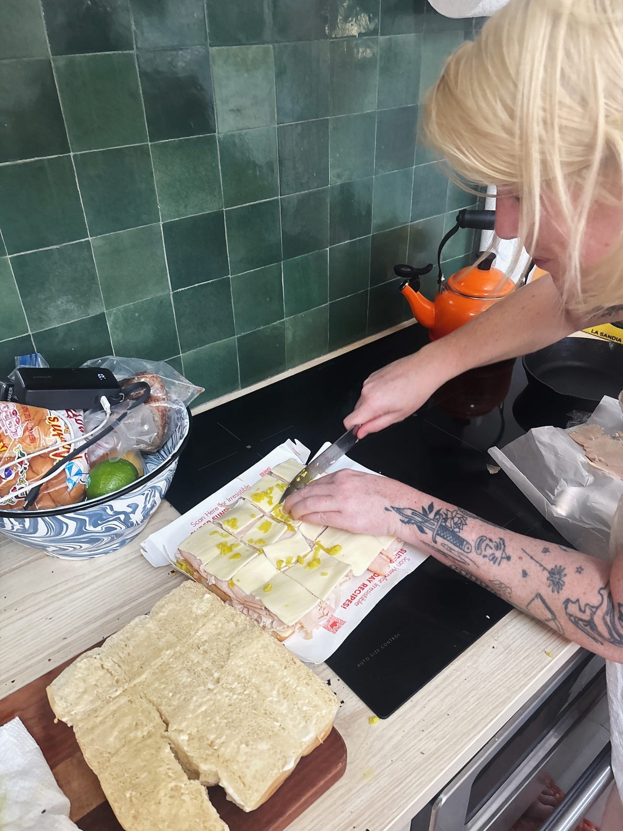 One of the great pleasures of not having TikTok or Instagram on my phone (any and all family history of addiction [half WASP/half Irish Catholic] has funneled directly into my relationship with my phone and if I have TikTok on there I will be on it 8 hours a day and fall into an intense depression) is that someone will make a viral recipe and I will have no idea where it came from. I hear that this format of sandwich is popular in short-form videos, but it’s a little more fun to hold on to the ignorant belief that my friends invented this party trick. It is one of the greatest beach snacks I have ever made or consumed: communal, novel, punchy, easy to transport. Add the salami if you want! I wrote a recipe for it.