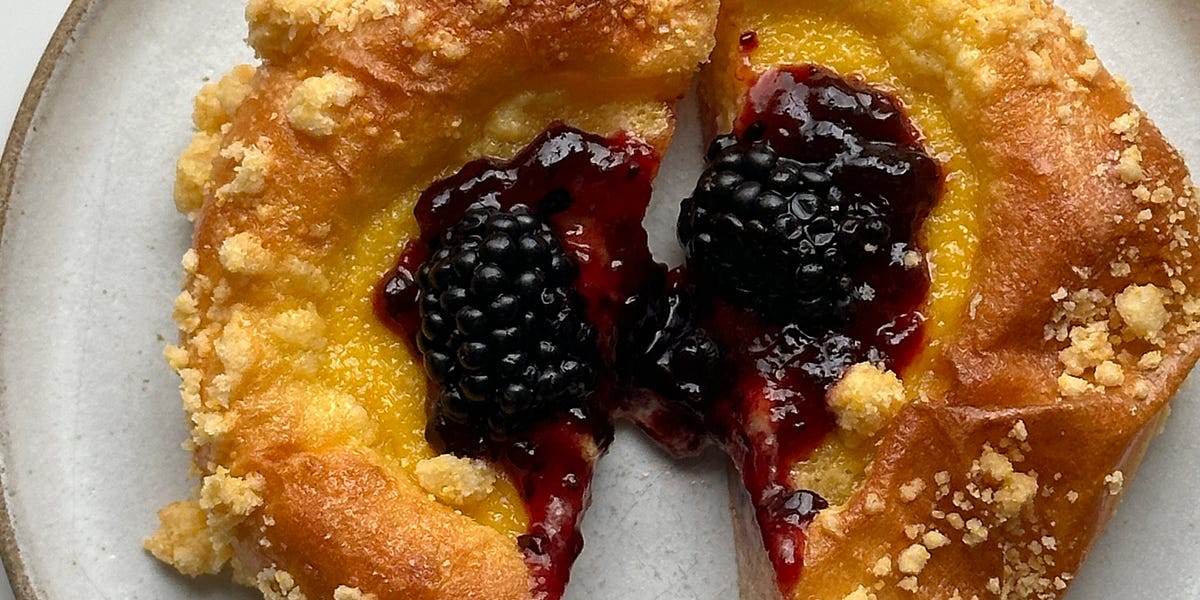 These Golden Corn & Blackberry Brioche buns from Nicola Lamb look very, very good, and the recipe she shared for it received the sort of thorough testing that is her trademark: