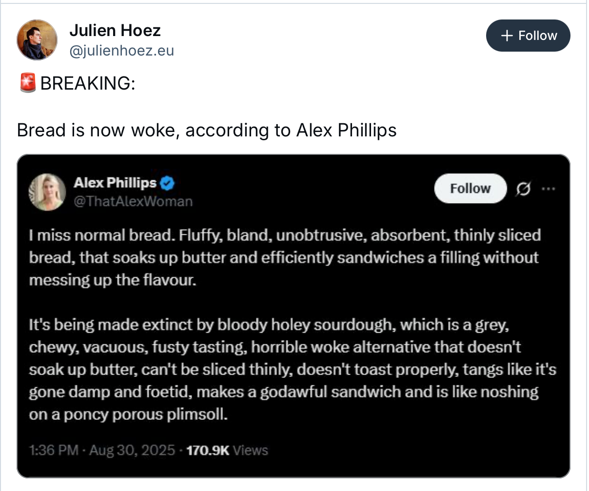 I'm still toiling away on the final draft of the Breaducation manuscript, but I am making good progress, and I think I may actually hand it in on time at the end of the month. It's hard to believe I'm finally close to finishing this thing, after 2-3/4 years. I still have to button up the recipes and get them cross-tested, take photos, and sort out the illustrations, so it won't be done done until the end of the year, but getting to a final draft is still a huge milestone. If all goes according to plan (a big if), it will be out November 2026. I have 19 days left to finish it, and I'll be working all 19 of those days, so posting here may be somewhat limited during that stretch. (Thank you all for your patience with this.)