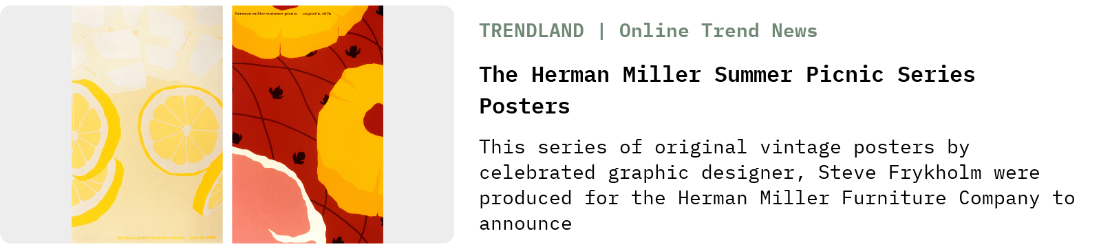 Welcome to the Wordloaf Friday Bread Basket, a weekly roundup of links and items relating to bread, baking, and grain. Corn Week comes to a close here at Wordloaf with a link to this excellent overview of designer and artist Steve Frykholm’s amazing Herman Miller Picnic posters, my favorite of which is the sweet corn one pictured above.