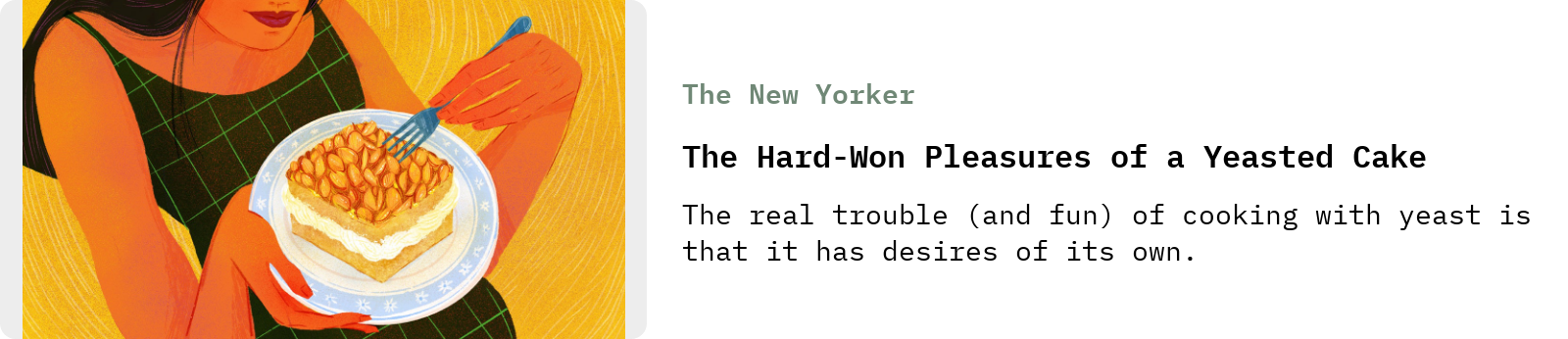 Everything that Ruby Tandoh writes is wonderful, including her recent New Yorker essay all about yeasted cakes: