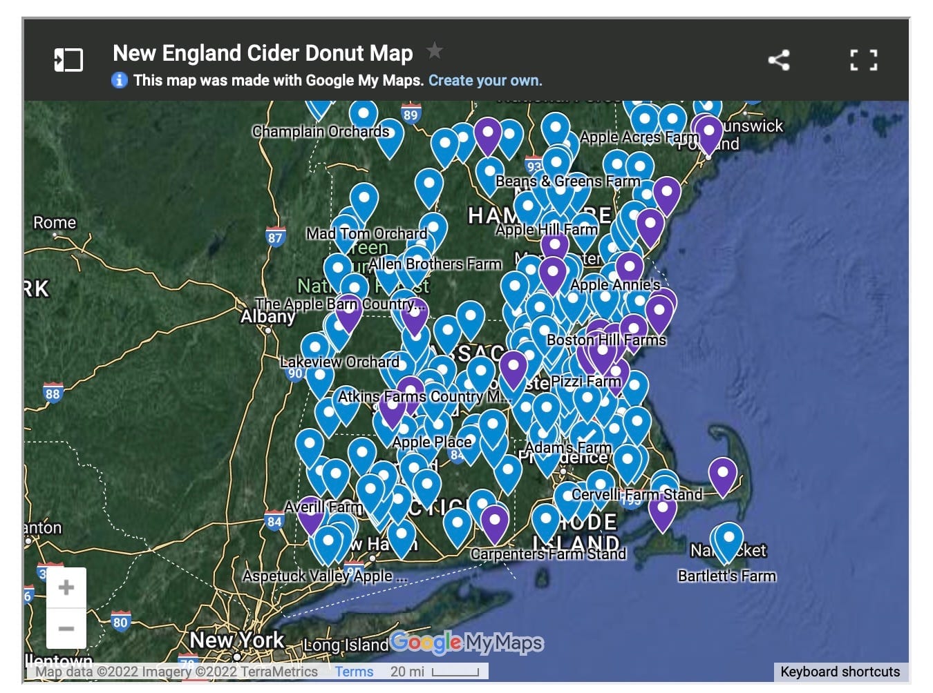 The 35-year-old’s crowd-sourced New England Cider map, which gained widespread attention last fall, now includes a whopping 310 locations that make and sell cider doughnuts — 50 of which he’s visited himself.