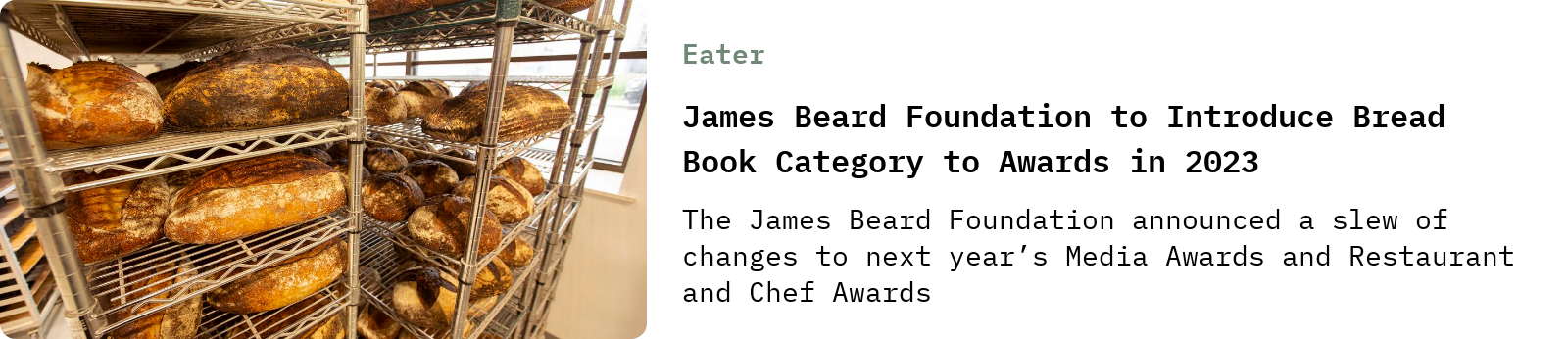 My pal Dayna Evans wrote a post for Eater on how the James Beard Awards have just added categories specifically focussed on bread: