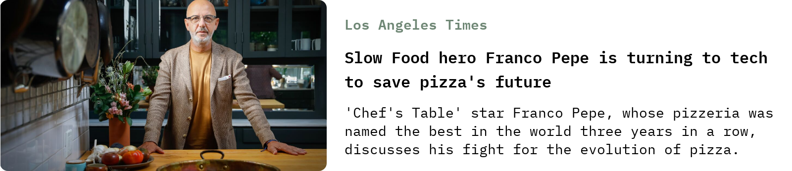 Full disclosure: I still haven’t watched the Franco Pepe episode of Chef’s Table: Pizza yet (I like food TV just fine, but at the end of a long day in the kitchen, I rarely have the appetite to watch it.) The LA Times recently profiled the Italian pizzaiolo’s quest to redeem pizza capricciosa, a variation on the “quattro stagioni” pie topped with ham, mushroom, artichoke, olives, and tomato that has apparently seen better days: