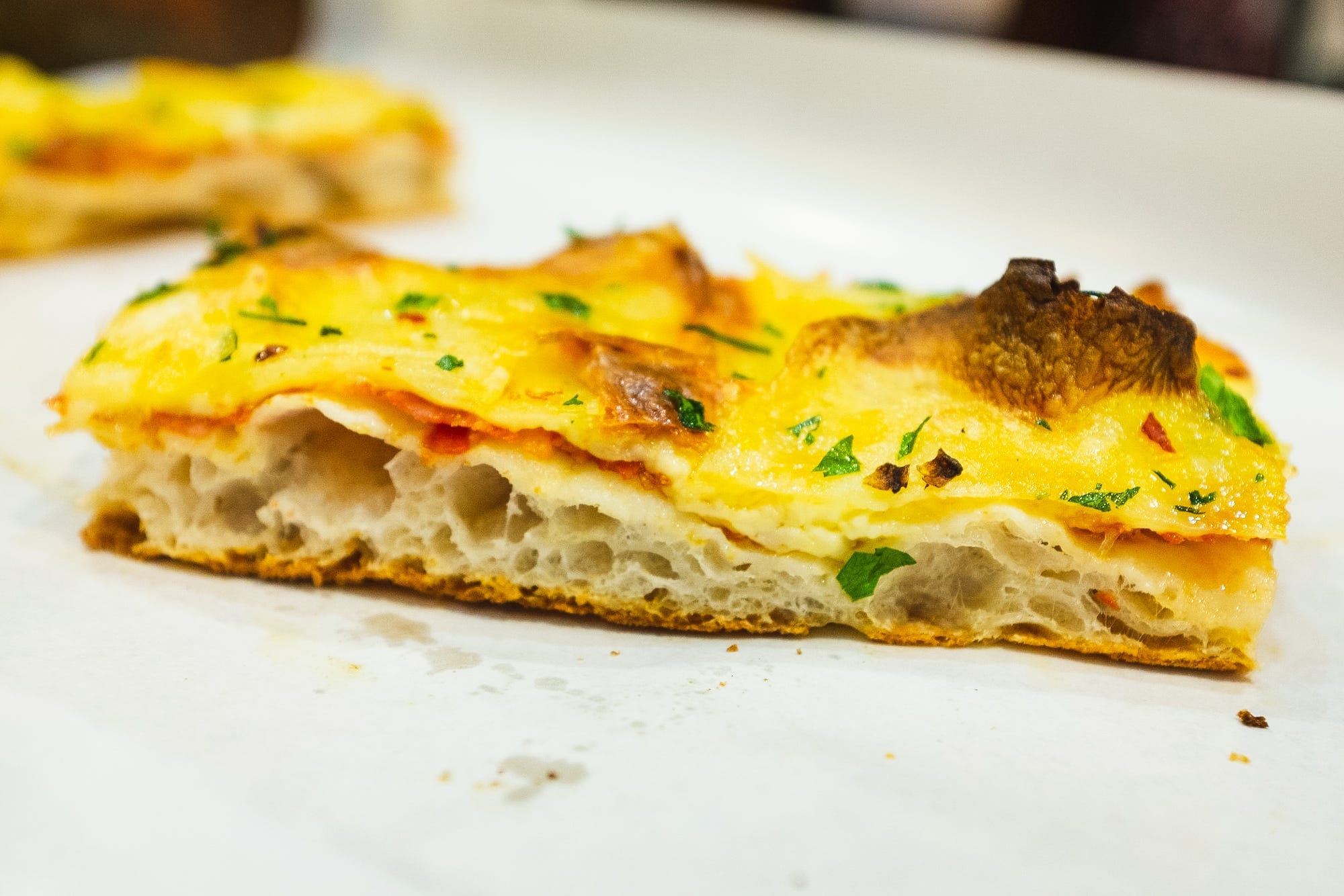 I’m very happy with my own al taglio recipe, which uses a 24-hour cold fermented dough. But I still dream of the slice—potato, sopresatta, and mozzarella—that blew me away when I was there, and I still hope to recreate it in full some day. It truly is the single best slice of pizza I’ve ever eaten: