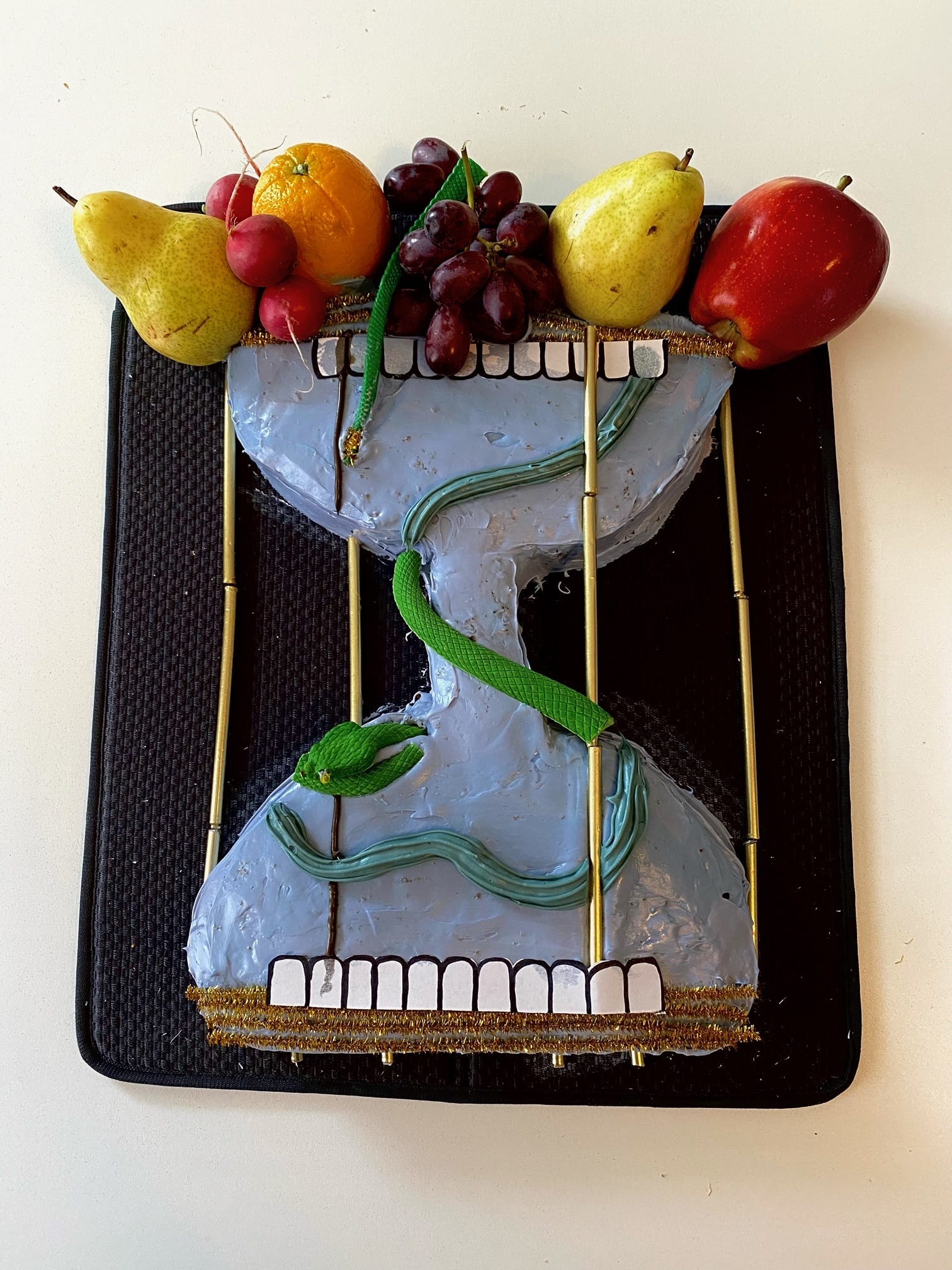 That piping technique that was all the rage last year — the so-called “shag rug” technique — would look great on a cake made to look like Margaret Garrett’s ode to Greek legend Clytemnestra.