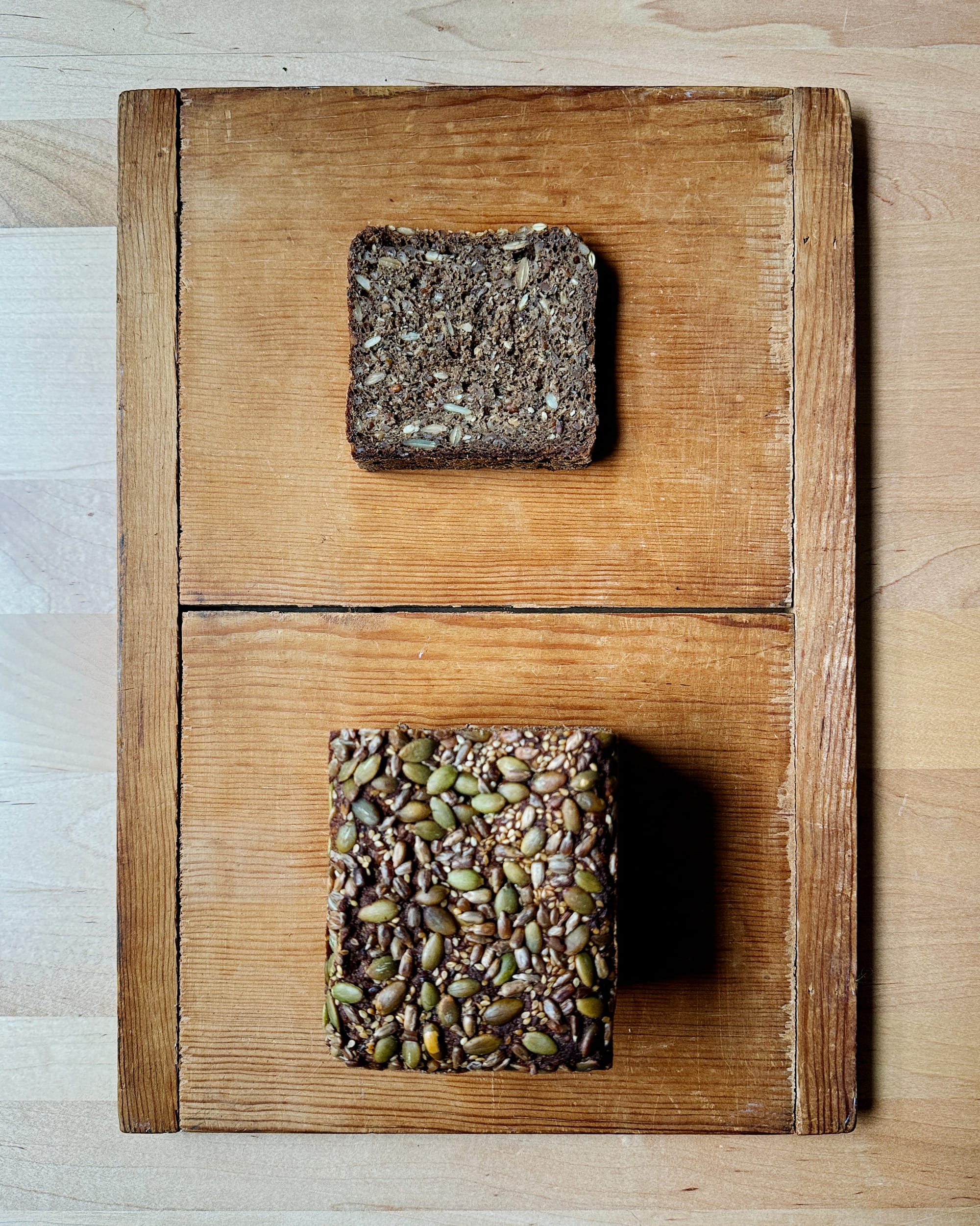This one I have learned through experience: Be conservative with the hydration of the dough at first, to avoid overshooting the mark, since some soakers do carry water into the dough itself. You should always strive to drain your soaker as much as possible before adding it to a dough, but some ingredients hold onto moisture—on their exteriors, not just their insides—more tenaciously than others. (Small seeds are challenging to drain fully, especially those that release starch or other sticky compounds upon soaking. Flax seeds are annoyingly goopy, for example.)