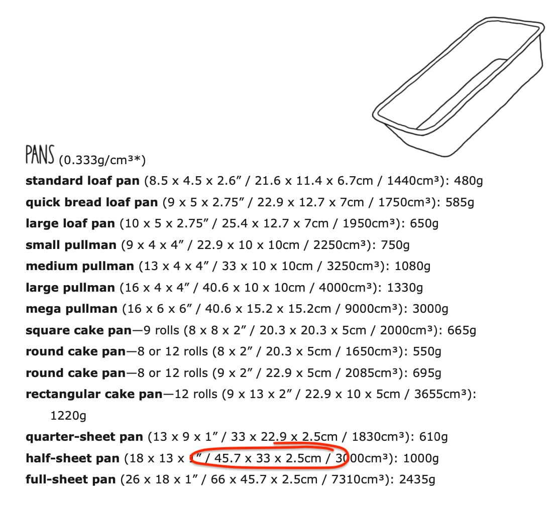 Happy Mondays, all. I love the response you all had to the pan size chart I posted last week. This is the sort of food- & cooking-related tool that I find most useful. The Pocket Reference that it comes from is filled with similar charts and tables, and I’ll be sharing more of them in the weeks leading up to the booklet’s “pub date” (ie, the day the box of printed booklets arrives on my doorstep). Should I ever have the opportunity to create a larger, more comprehensive book on bread and baking, it will be chock full of them too.