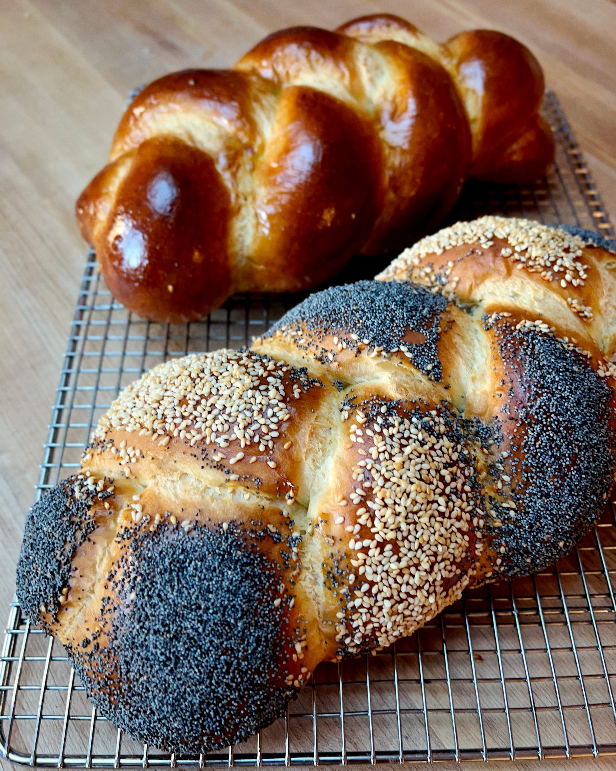 On Friday, I finally got around to making Rachel Mennies’ Houseguest Challah recipe, and I can confirm it is as wonderful as depicted and described. One thing I tested out was the mid-bake second egg wash, which gives the bread an amazing mirror gloss, as you should be able to see in the image above. Definitely going to use that move all the time now.
