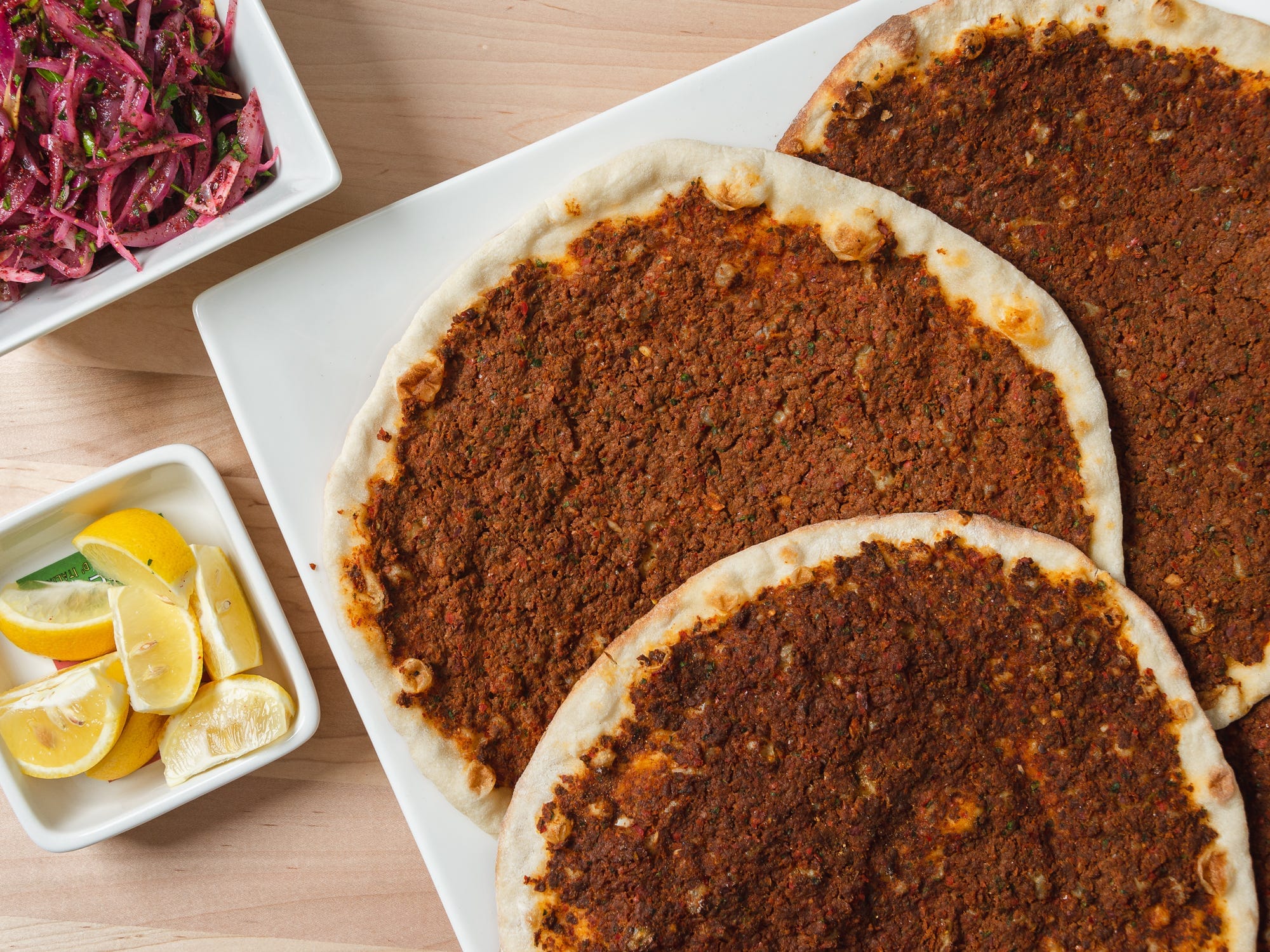 Happy Mondays, everyone. Hope you all had a nice weekend. I tested and/or photographed a bunch of recipes, including the lahmajun pictured above, which are for an upcoming Serious Eats recipe. And I finished up the recipes for my upcoming workshop at Sofra, the new ones of which—tahinov hats and nazook—I will share here soon.