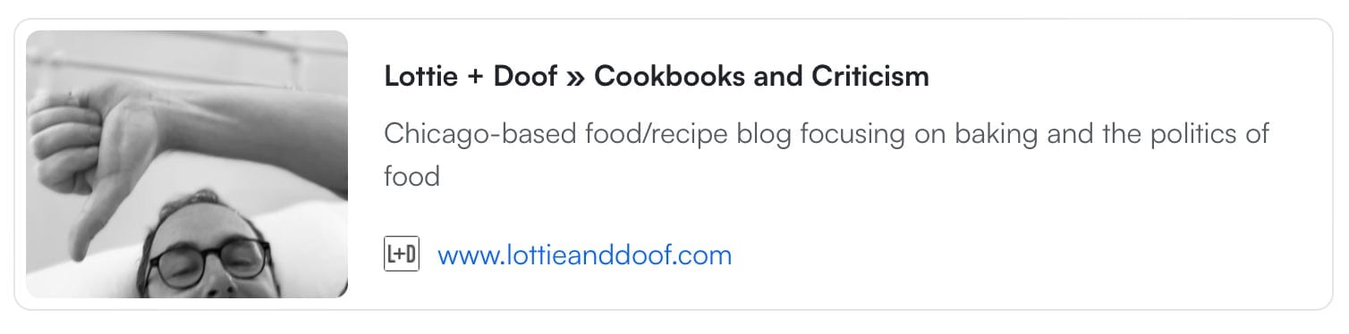 Reviewing cookbooks is something of a lost art, because no outlet can really afford to pay someone to do the weeks or months of work a single review really deserves. If you are interested in reading more about the sorry state of cookbook reviewing, I highly recommend ’s (aka Lottie and Doof) recent essay, Cookbooks and Criticism, which sparked a lively debate online: