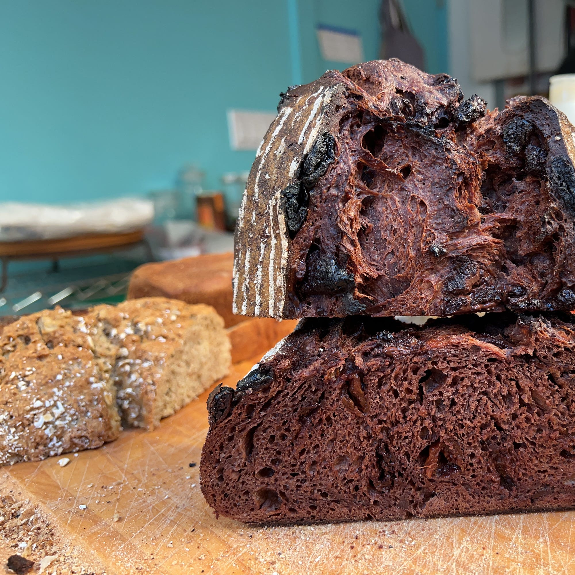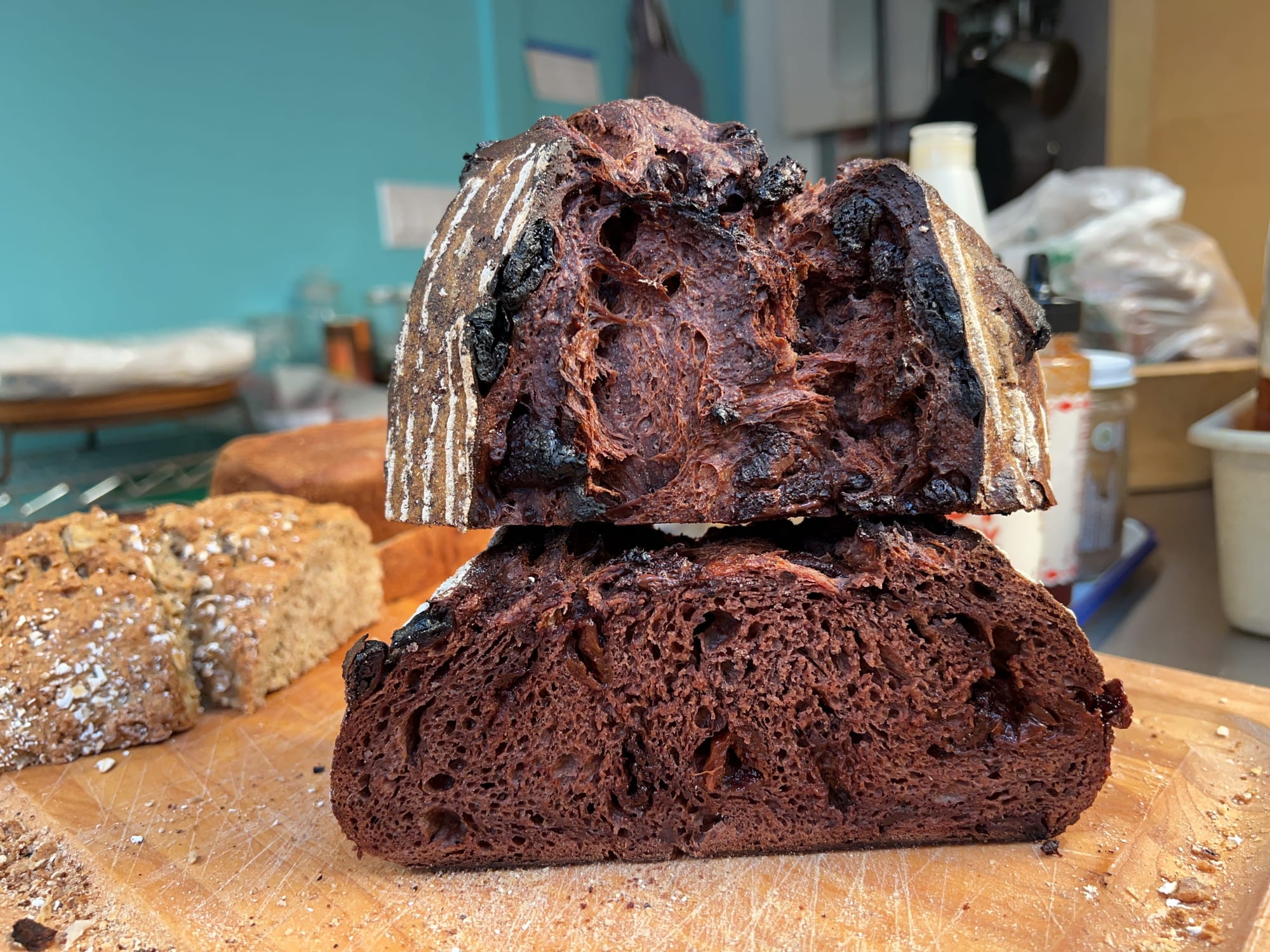 And the chocolate-cherry-sourdough, the hydration of which I haven’t quite nailed down. Monday at the latest for this one too.