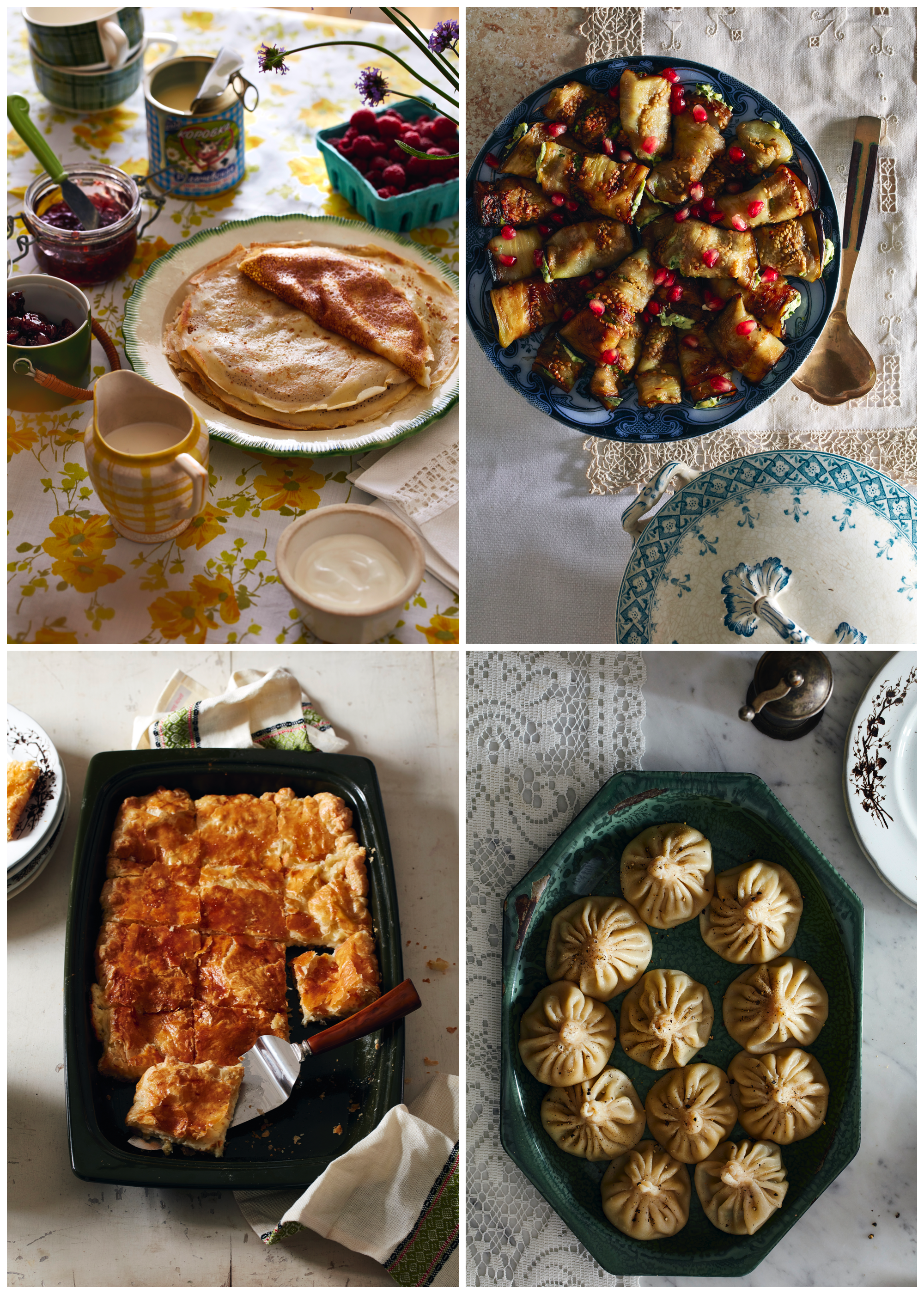 And there are loads and loads of sweet and savory dumplings and dumpling-adjacent dishes here: blinchiki (blini), syrniki (farmer's cheese pancakes), varenyky (Ukrainian dumplings, pictured on the cover image above), pelmeni (Siberian dumplings), khinkali (Georgian soup dumplings), treugolniki (beef turnovers) pirozhki (Slavic stuffed buns), vatrushki (farmer cheese-stuffed buns), and more. Given this, it would seem that at least one thing linking the diverse cultures of the post-Soviet world is a love for dumplings of one kind or another.