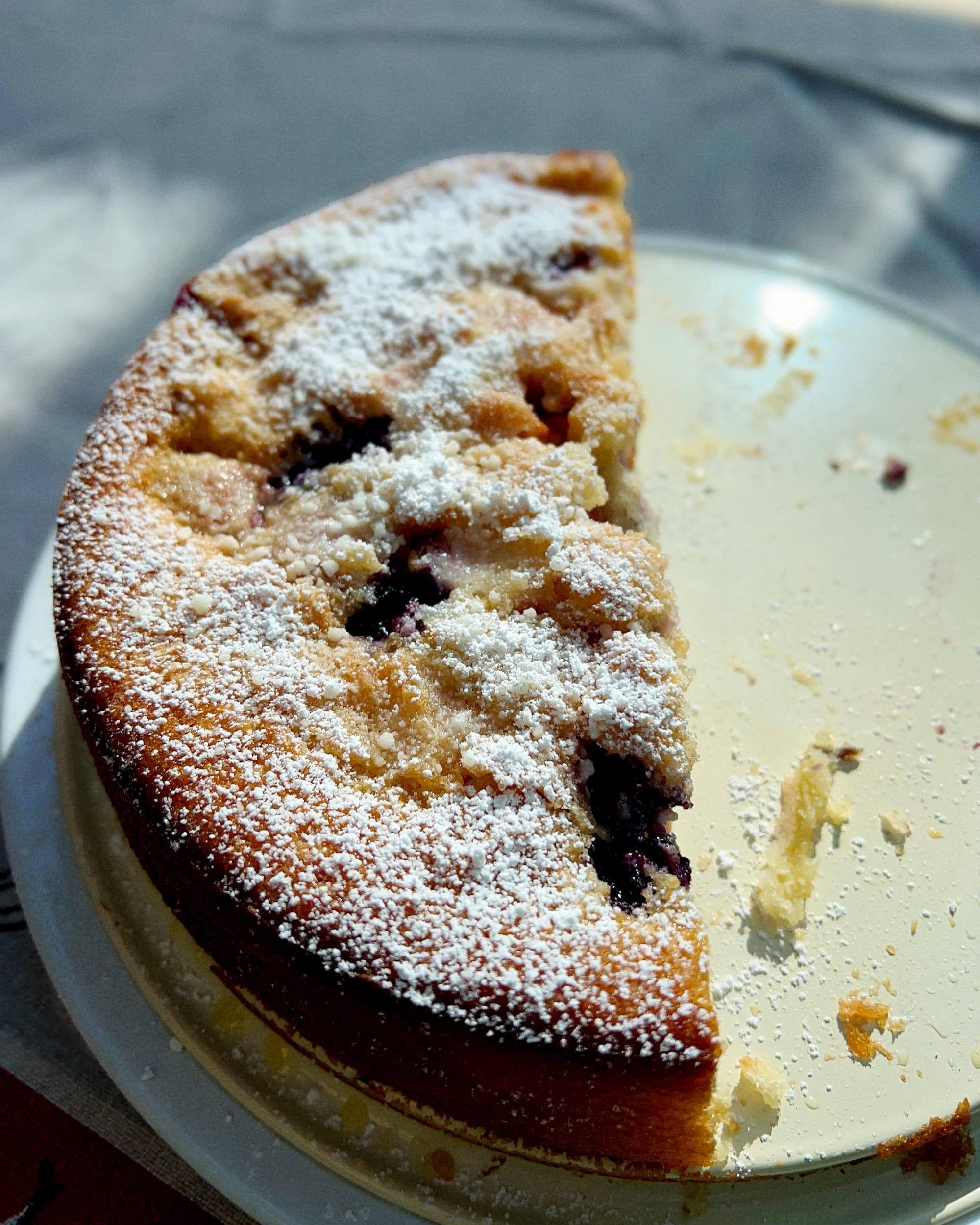 - Dust the cake lightly with confectioners’ sugar, cut into wedges, and serve.