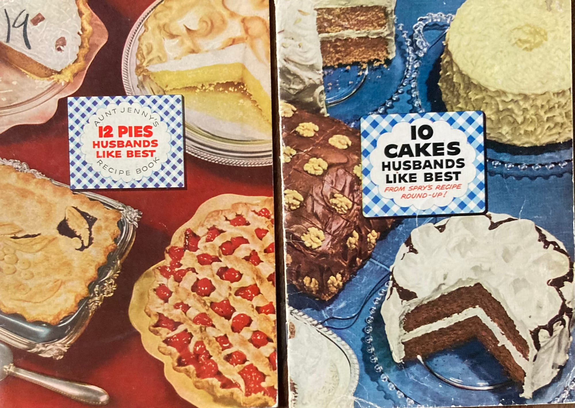 1) Ephemera. I gather paper evidence of the olden days. This started 30+ years ago when I was running a thrift store. On my days off, I’d visit other thrift stores, and I started collecting old food advertising. Fats like Crisco & its competitor Spry were well represented, as was baking powder. I fell in love with the images. Spry had cartoons that were grossly sexist—10 Cakes Husbands Like Best, 12 Pies Husbands Like Best. I studied Royal and Rumford recipes, trying to figure out the difference between corn fritters and corn cakes. I stared at the colorful pictures of cakes as if they were my cakes, prepared for me by a magical aunt and waiting on the counter of a kitchen I just needed to find.