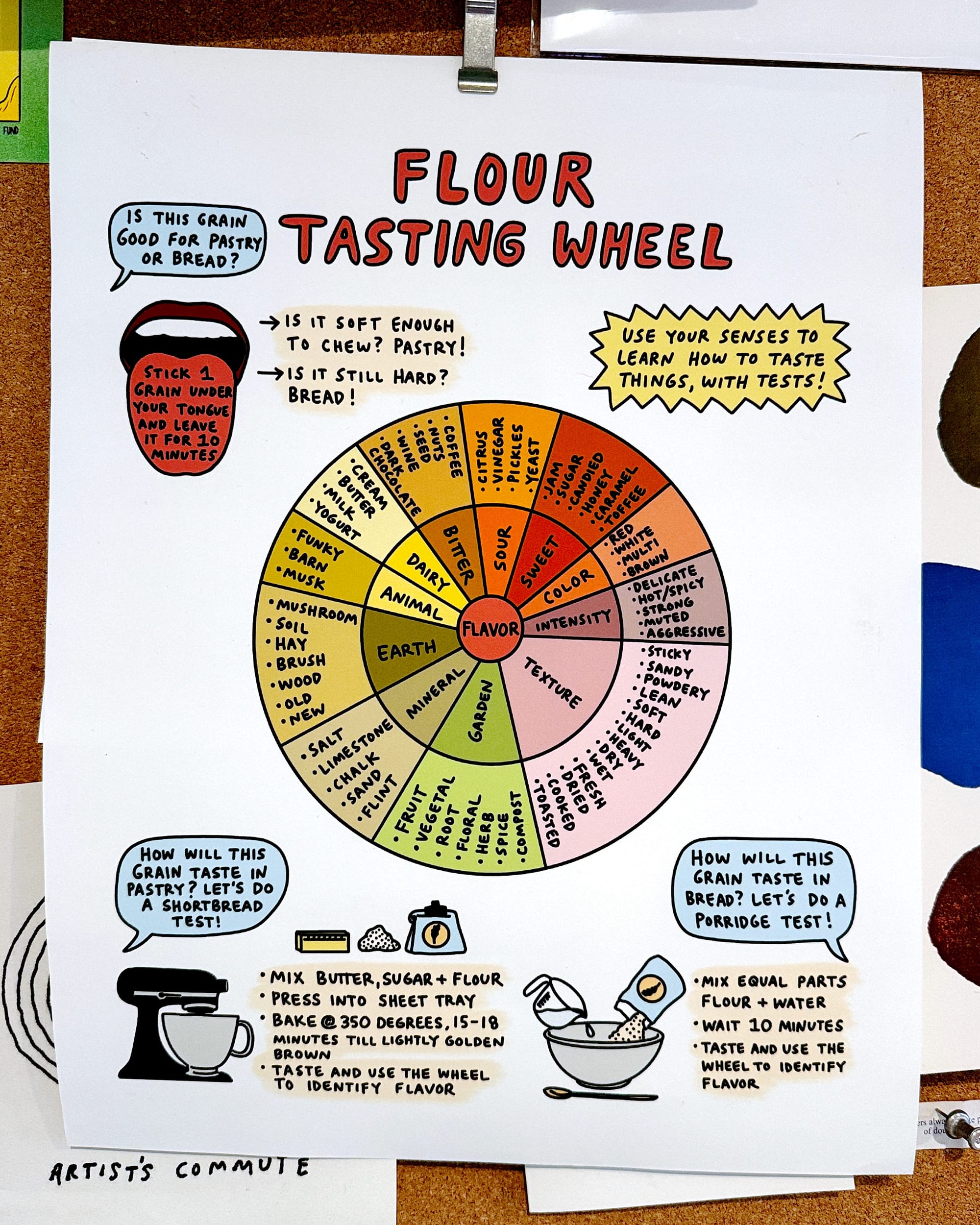 One of my favorite details of Bread and Roses are the many marvelous illustrations in it done by Stacey Michelson, including this amazing flour tasting wheel. Every single one of them is the sort of thing I’d love to have on my walls, both as art and as essential reference (lucky for me, Rose sent me this one as a print!)