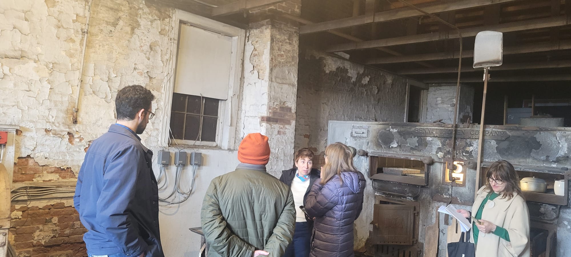 We tried to visualize the room in use, walking through the making and baking of rolls and breads. The Reher family would not have worked on the Sabbath, Saturdays, until sundown, and board member Andrea Del Cid, whose family runs a Guatemalan bakery in Spring Valley, led us through a baking day, starting in the middle of the night, to suggest a parallel.