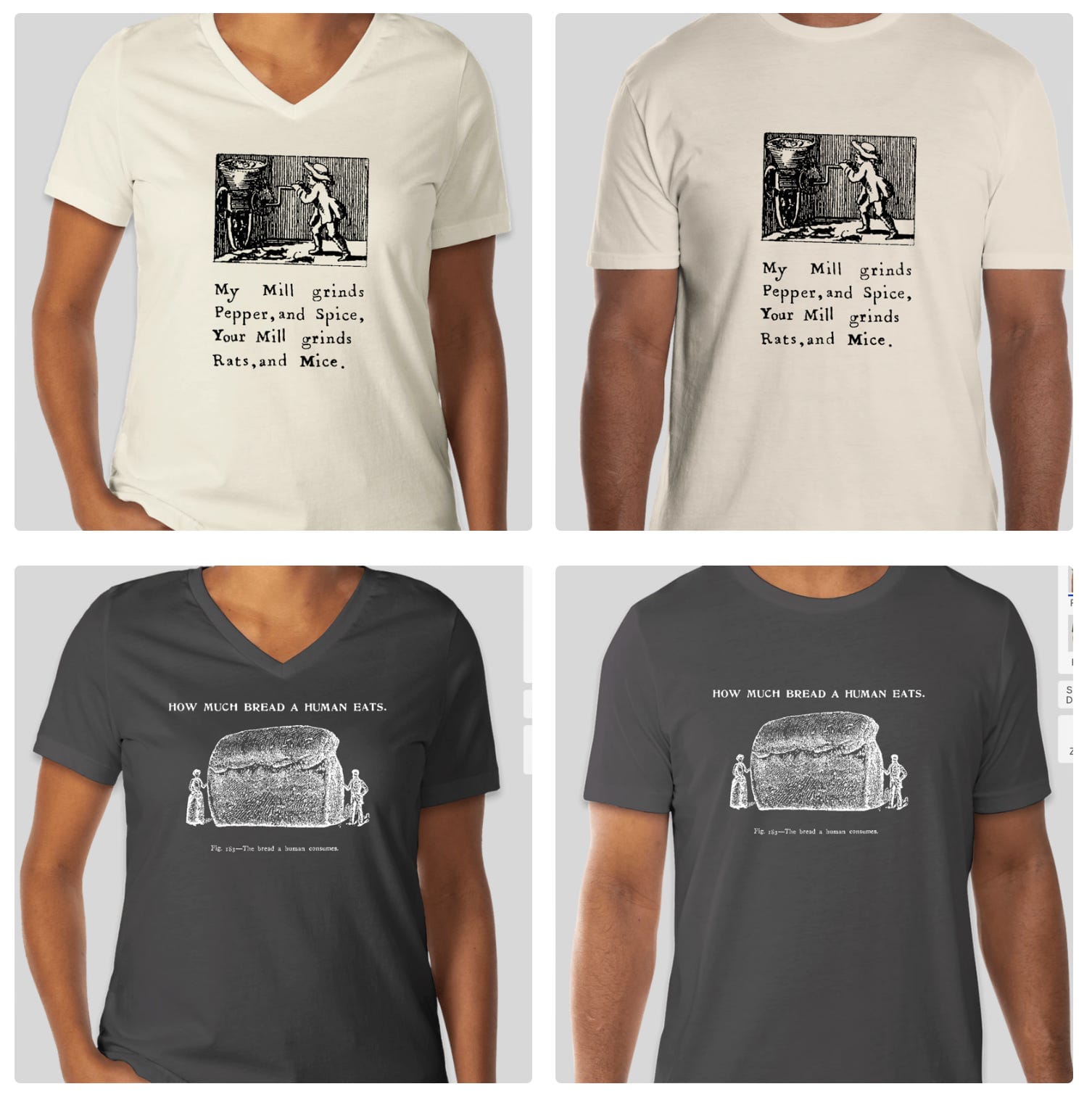 Happy Mondays, everyone. As I mentioned a few weeks back, I’m doing a limited run of a new “My Mill Grinds” t-shirts (in “natural” color, which has the color of sifted whole wheat flour), along with a 2024 version of “How Much Bread a Human Eats”, this time in dark gray.