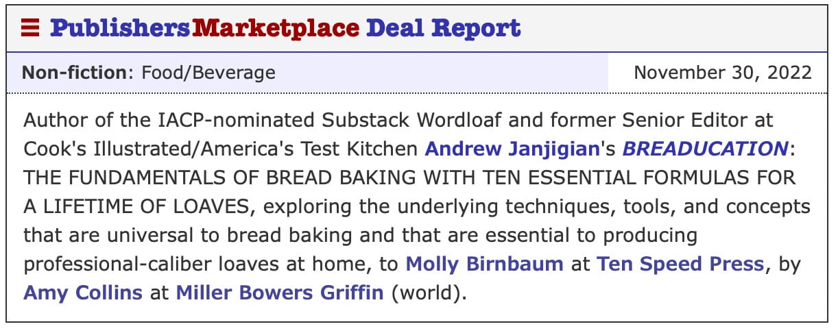 In case you were wondering if the book project means I’ll be dialing back work on or distracted from the newsletter, fear not. My plan is to use Wordloaf as a scratchpad and a laboratory for the book, so you’ll all have a front row seat for its development. And I plan to share book recipes in development here too, though I think I’m going to keep those behind the paid subscription paywall, because I don’t want them freely available until the book is out in the world. So sign up now if you want access to them!